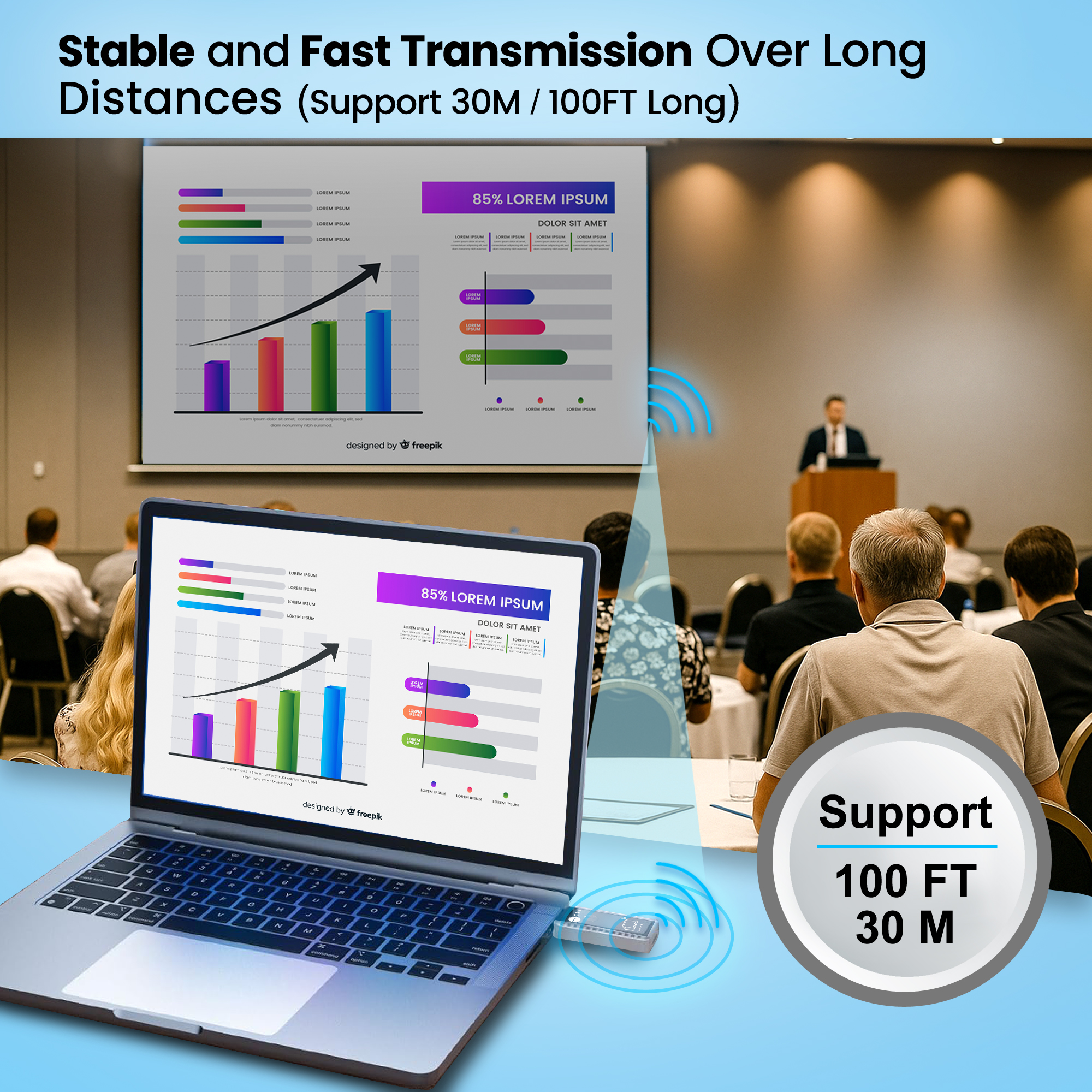 - True Wireless HDMI: Transmit video & audio up to 100 ft (30 m), point-to-point.