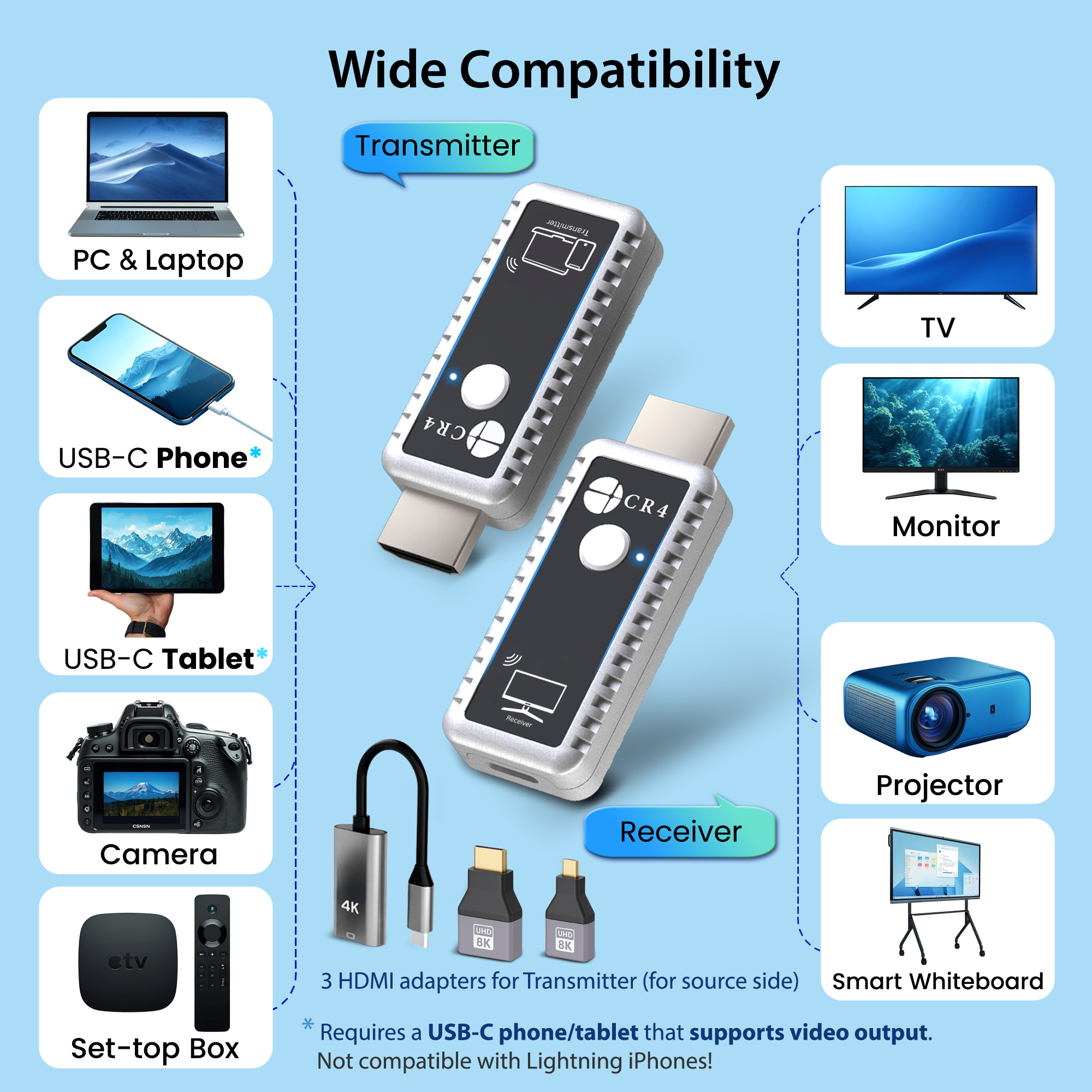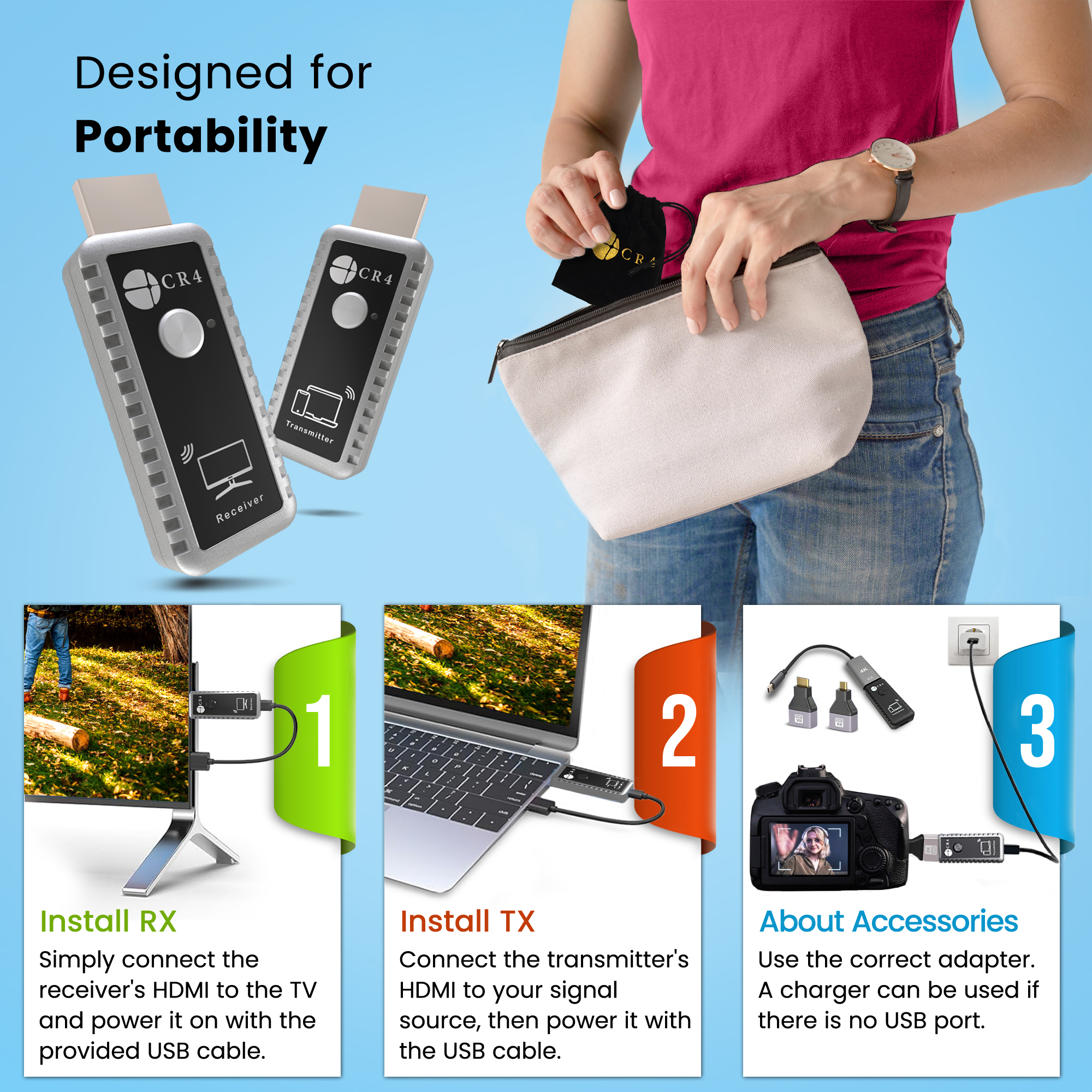 - 1 × CR4 Wireless HDMI Receiver (RX)