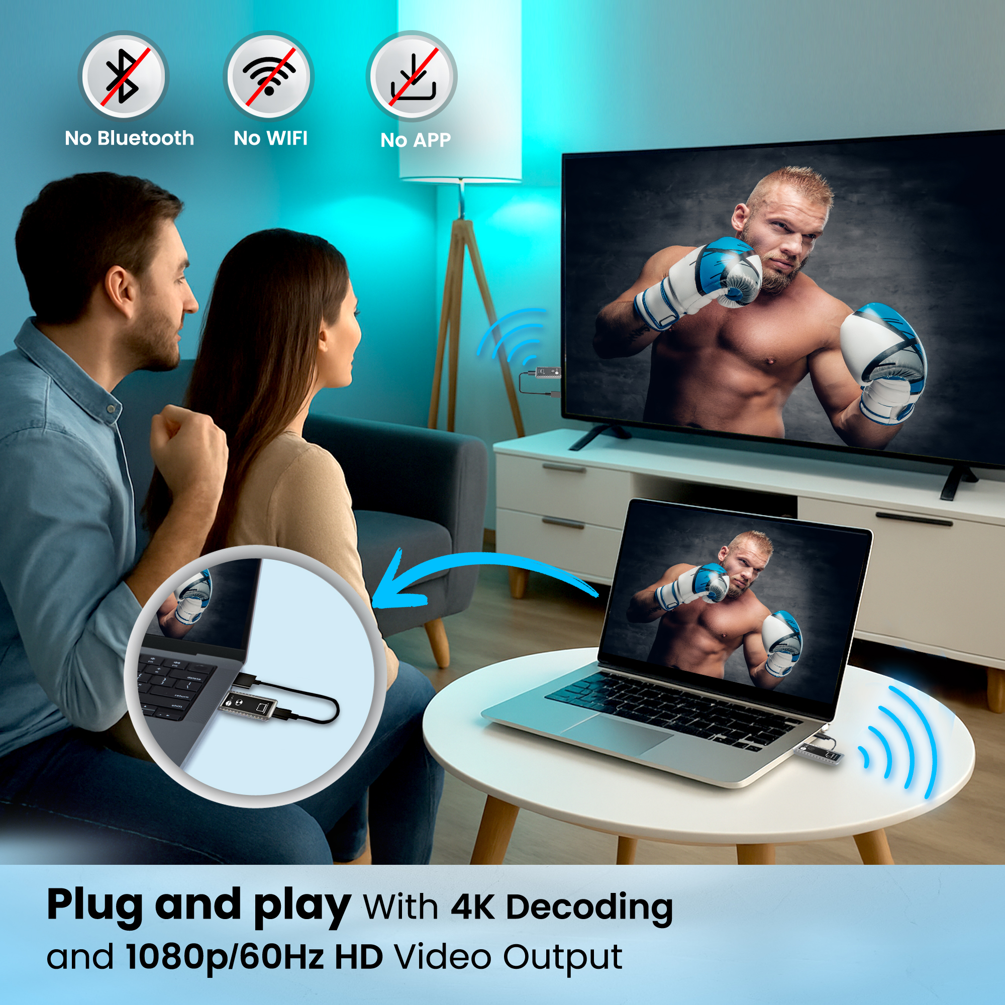 Connect freely. Stream wirelessly — no Wi-Fi, no apps, no drivers.