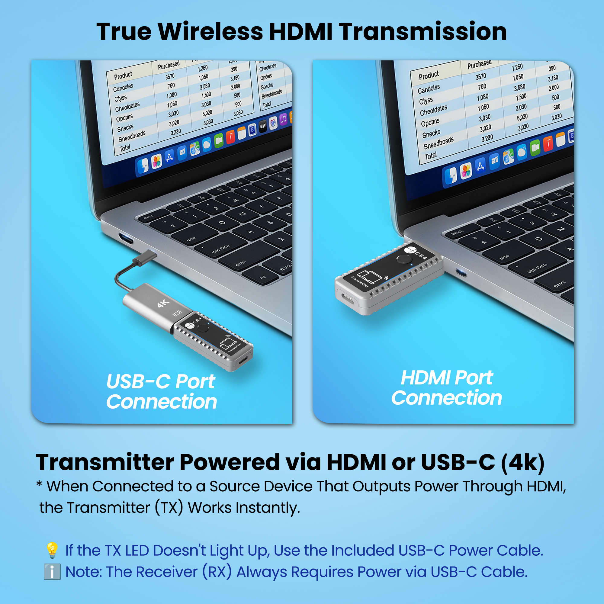 - 1 × CR4 Wireless HDMI Transmitter (TX)